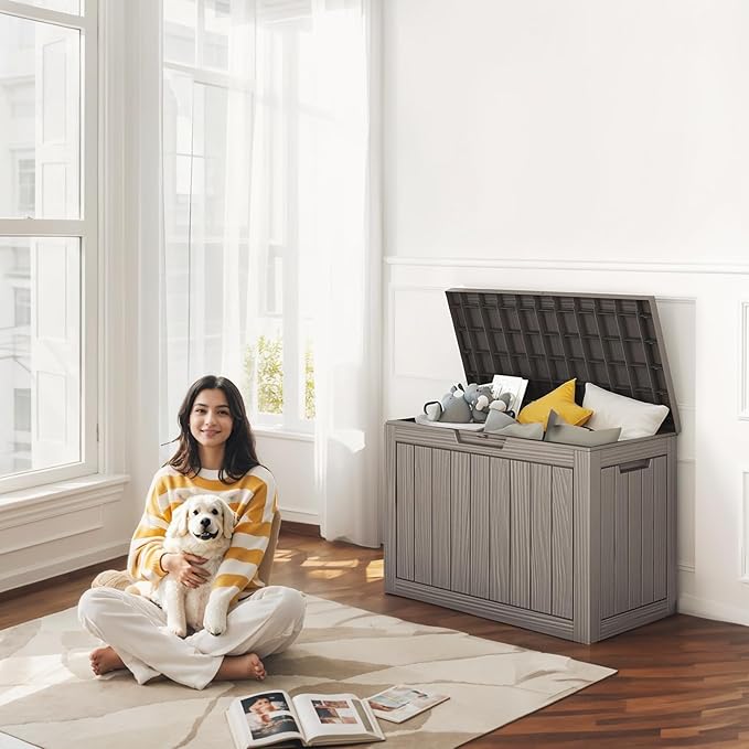 - Multi-function: Perfect for organizing your outdoor space, the small outdoor storage box can also be used as a bench to make the most of your patio space while serving as a gardening tool box, outdoor cushion storage box, pool storage box, or porch package delivery box.