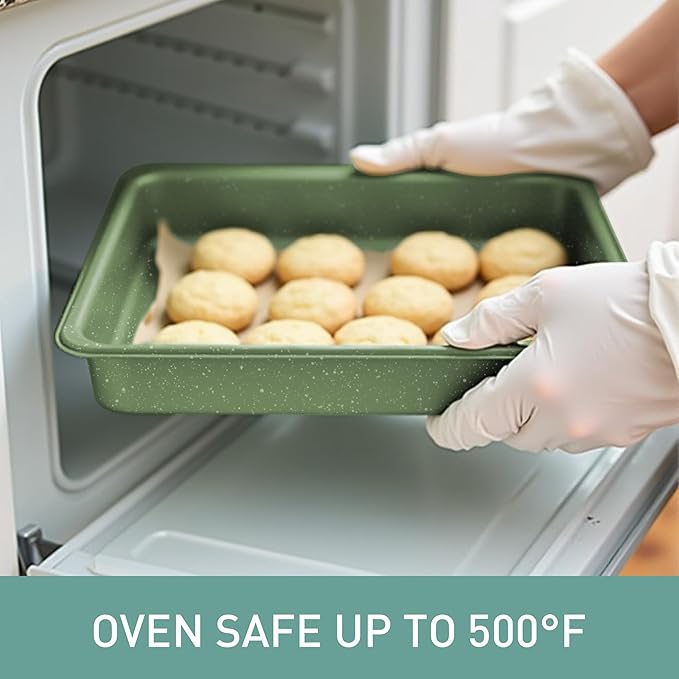 MAISON ARTS 30 Piece Pots and Pans Set Non Stick, Kitchen Cookware & Bakeware Sets with Nonstick Granite Coating, Baking Tray, Frying Pan and Saucepan, Green