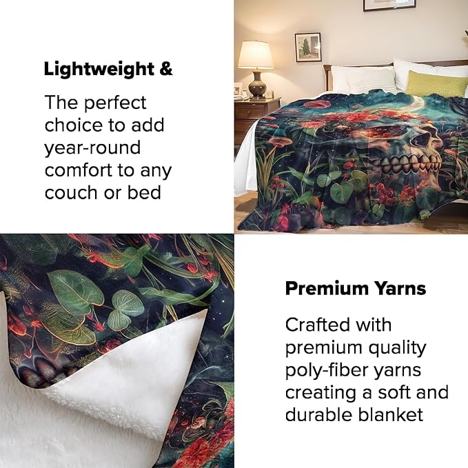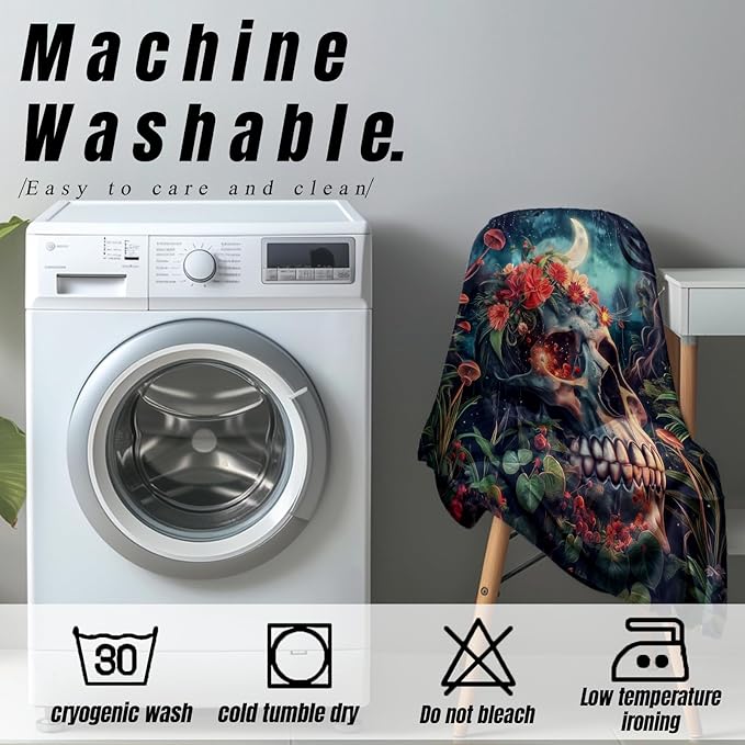 Gothic Floral Skull Blanket Gifts for Adults and Kids Halloween Throw Blankets for Bed Room Couch Soft Lightweight Warm Cozy Throws Decor 50x60in