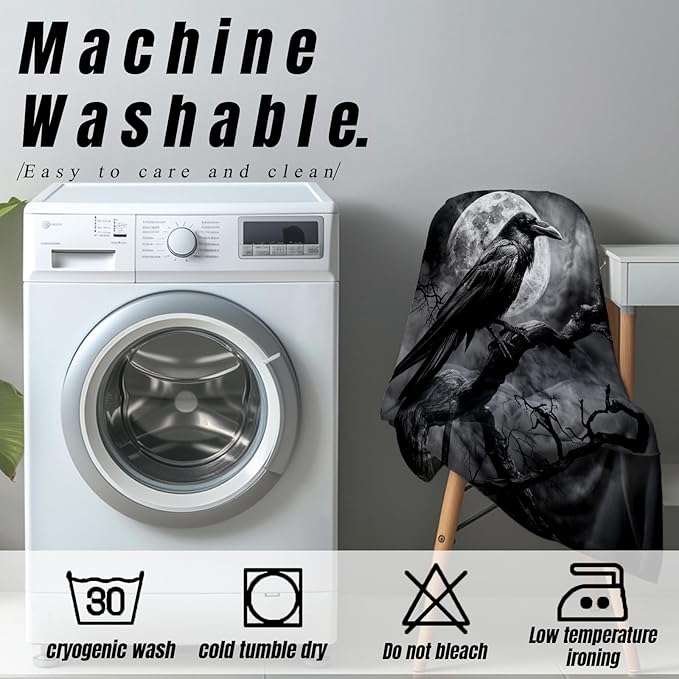 Gothic Blanket Gifts for Adults and Kids Raven and Moon Halloween Throw Blankets for Bed Room Couch Soft Lightweight Warm Cozy Throws Decor 60x80in