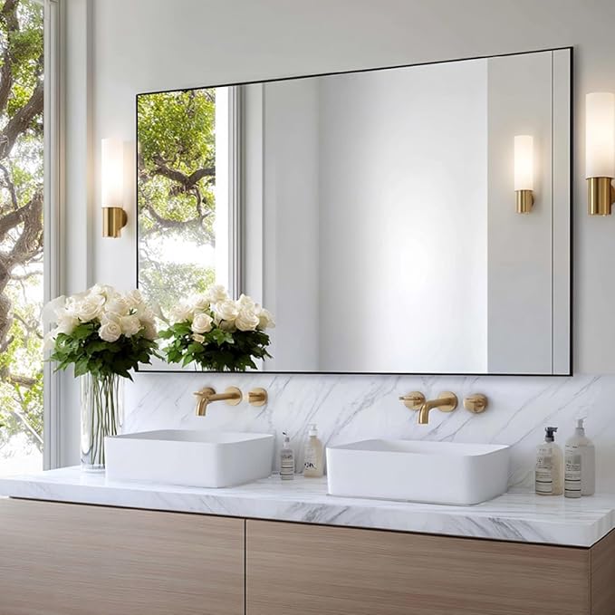 - Modern Design:KOCUUY 36x55 black vanity mirror is with innovative design which gives the wall mirror a more fashion feel. With a classic square corner, the wall mounted mirror allows for creativity and functionality in bathroom, bedroom, entryway and anywhere else. Let your living space be an expression of your personal style, not limited to modern or contemporary, farmhouse or industrial