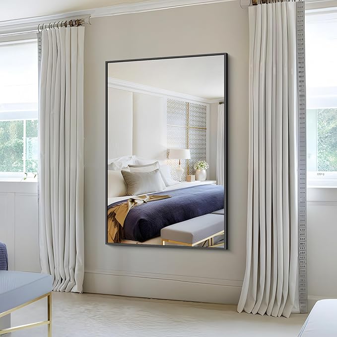 - Easy Installation:KOCUUY rectangular mirror can be installed horizontally or vertically. Please use the side frames for fixation to avoid excessive pressure on the top frame, ensuring even stress distribution and extending the mirror's lifespan. Follow this guide for best results