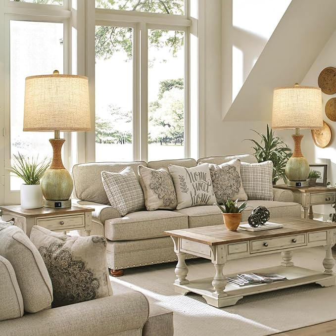 - Farmhouse Rustic Retro Table Lamp: The white bedroom lamp perfectly complements the cylindrical oatmeal lampshade to create an elegant atmosphere, making it easy to fit into most decor styles such as modern, classic, rustic, industrial, retro, and Nordic. Each lamp is 23 inches high, ideal for living rooms, bedrooms,dining rooms, offices, studies, and any room you desire.