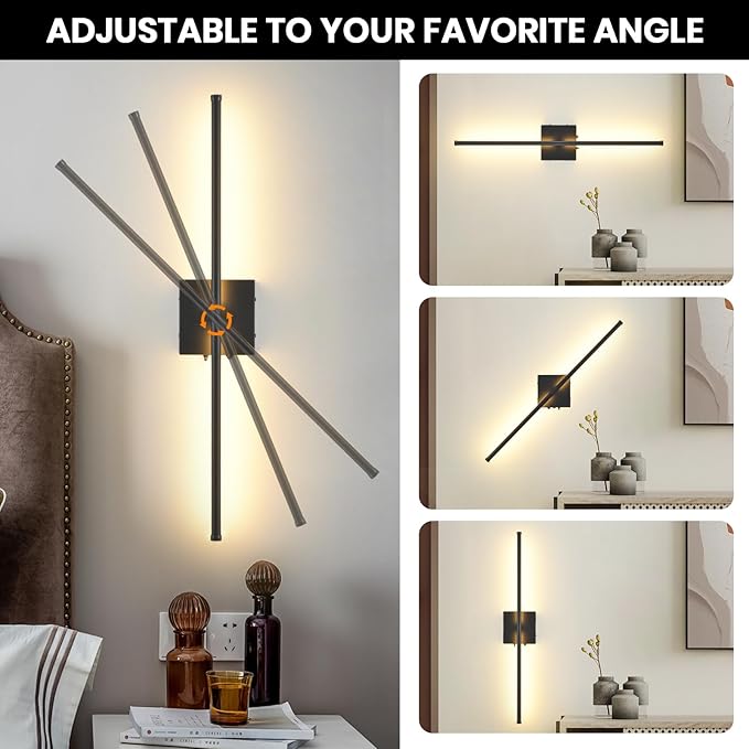 - 【Modern minimalist design style】The wall sconces set of two is finished in a classic matte black painted finish and chosen for its modern minimalist look. Perfect for use as a bedroom wall sconce, reading light, or as an elegant accent on either side of a mirror. Perfect for a variety of occasions, such as living room, bathroom, dining room, entrance, office, hallway, wardrobe and more. Wall lamps set of 2 also makes a thoughtful and stylish gift choice.