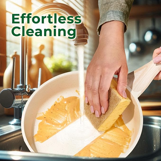 - High-quality non stick cookware:granite features non stick pan, ceramic nonstick frying pan and non toxic cookware safe for daily use. It is recommended to wash the cookware by hand, as cleaning it is quick and easy — simply wipe with a paper towel or rinse with water. Safe and non toxic, free of PFOA, PFOS, APEO lead, cadmium and other toxic substances