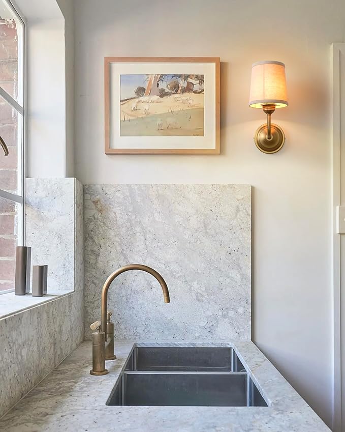 - Materials: Well manufactured with fabric and metal materials. Plating craft brass lampholder and hand made fabric shades which makes the wall sconce more durable and anti-dust