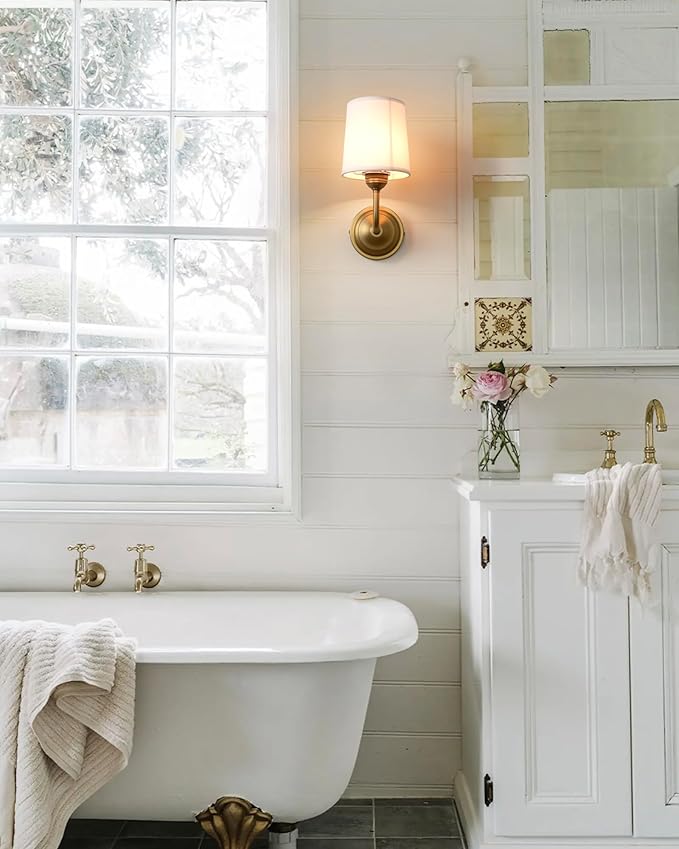 - Materials: Well manufactured with fabric and metal materials. Plating craft brass lampholder and hand made fabric shades which makes the wall sconce more durable and anti-dust