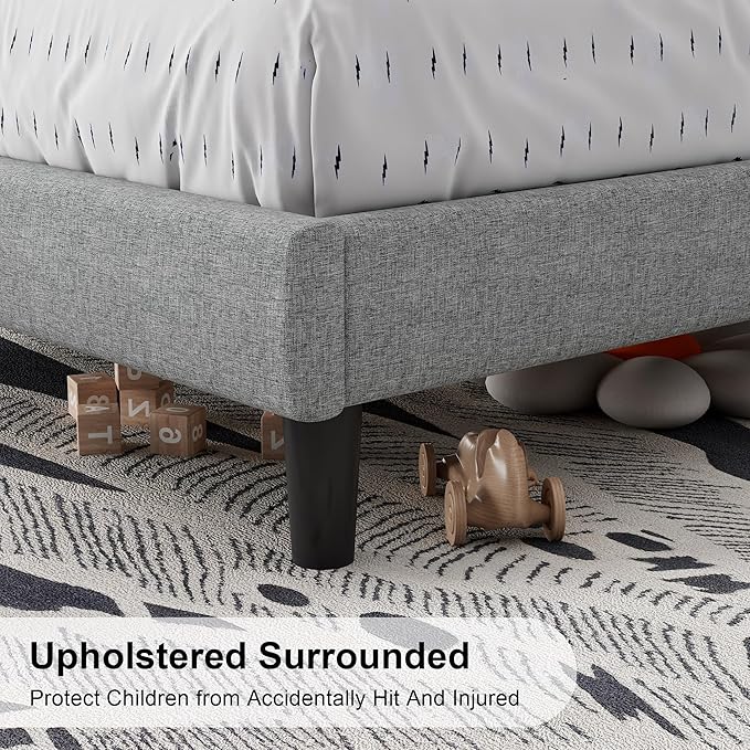 - Reinforced Bed Frame - Heavy-duty metal frame and 12 solid wood slats compose a central "+" structure to provide up to 1000lbs weight capacity. 8 support points make the bed frame more stable but won't scratch the floor.