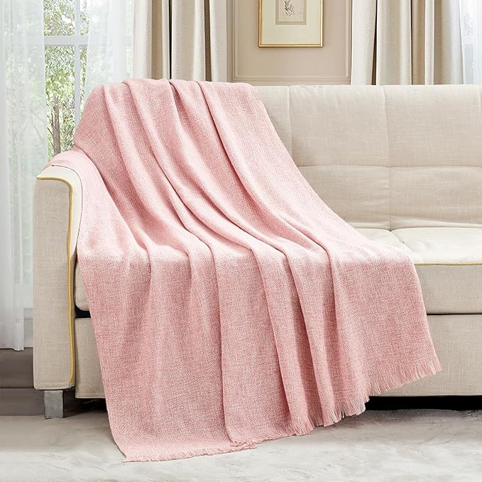 BOURINA Faux Cashmere Fringe Throw Blanket Decorative Lightweight Throw Soft Cozy for Bed or Sofa Outdoor Blanket, 50x70 Inches Pink