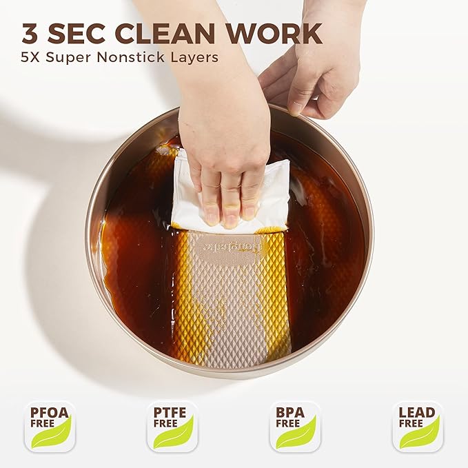 - TOXIN-FREE NONSTICK COATING – Experience effortless baking with our baking pans sets nonstick. The premium coating ensures smooth food release and is free from PFOA, PTFE, BPA, and lead, providing a safe and reliable baking experience.