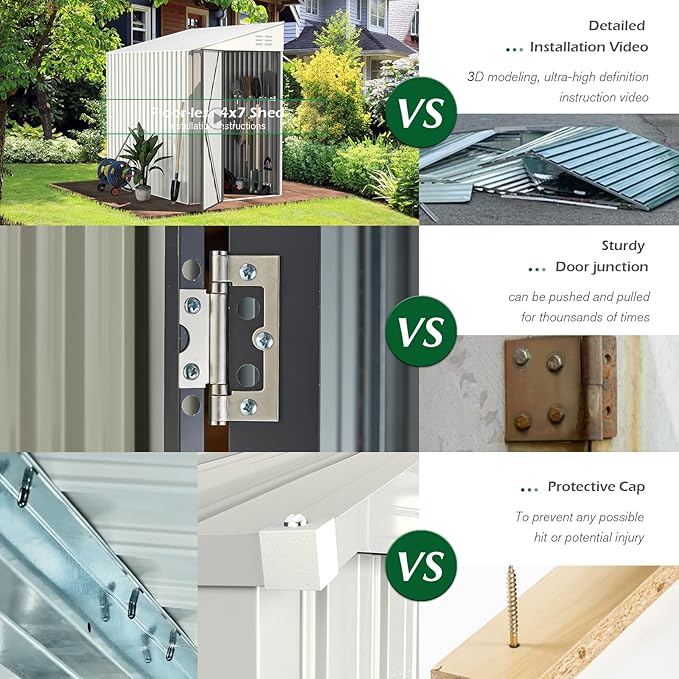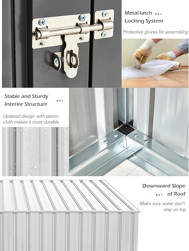 - Robust & Durable: Each metal plate has been reinforced, increasing the shed's weight to 112 pounds, significantly surpassing cheaper alternatives and enhancing stability. It is engineered to withstand severe weather conditions, with an impressive wind resistance of approximately 70 miles per hour.