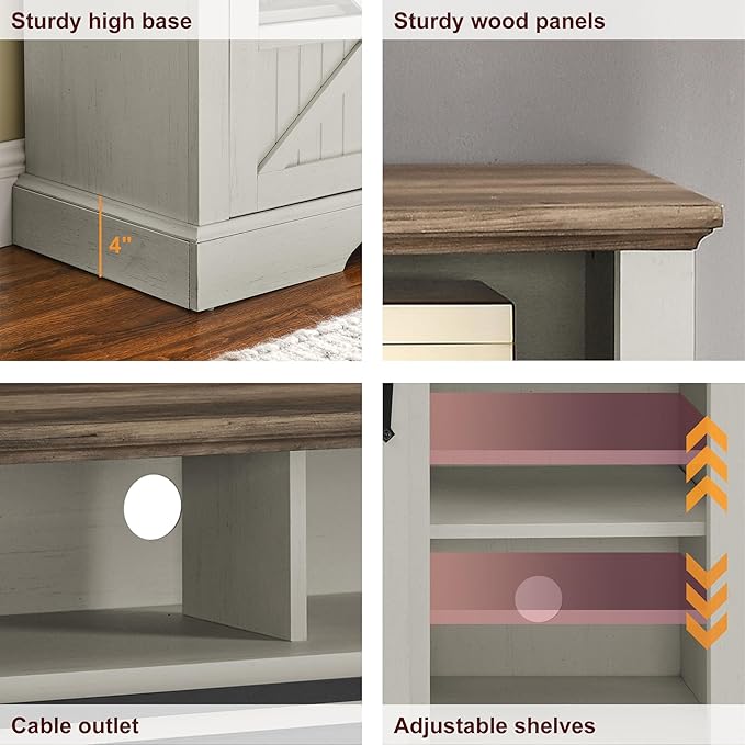 - Easy to Assembly: This farmhouse tv stand with fireplace assembly does not require professional help, thanks to its modular design—pre-drilled holes ensure precise, hassle-free alignment and connection. To set it up, simply follow our step-by-step illustrated guide. Designed for safety, we recommend two adults for smooth handling during installation. Plus, its modular structure allows easy reconfiguration for future moves or layout changes
