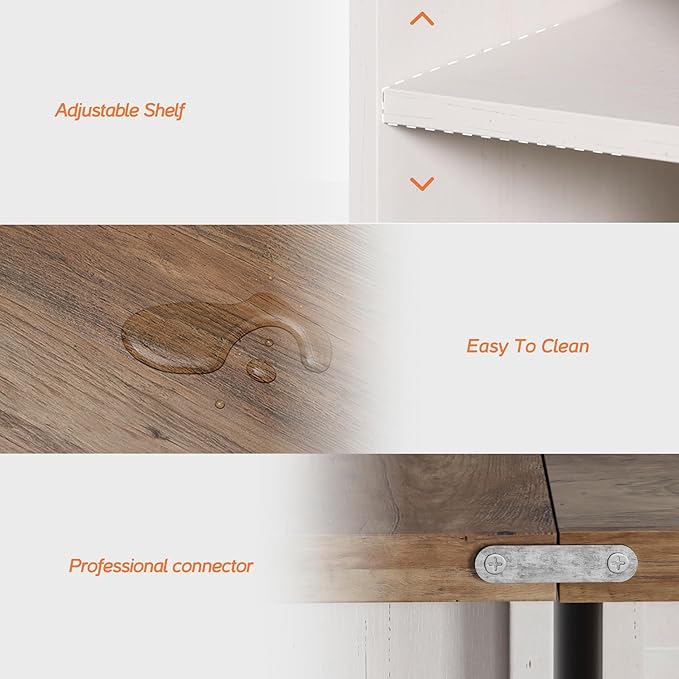 - Sturdy & Quality Assurance:Wood TV stand is made of thick manufactured wood, durable, strong, and easy to clean. Feel assured to place your TV on this TV Stand and enjoy your family time. The tv stand tabletop can easily hold up to 220 lbs. and the adjustable shelves can hold up to 30 lbs. each