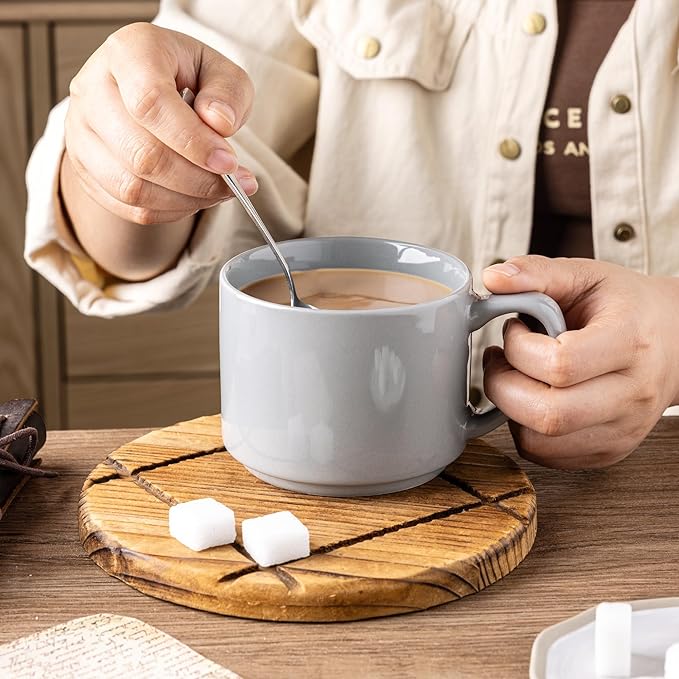 GBHOME 14OZ Stackable Ceramic Mugs Set of 6, Modern Coffee Mugs for Hot Drinks, Grey, 14 Fluid Ounces, 6 Count
