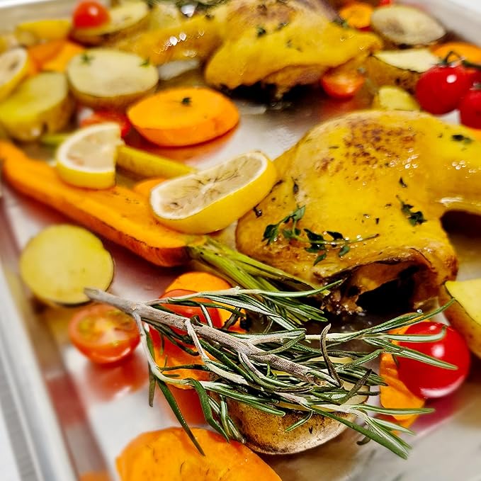 - ✔️100% RECYCLED ALUMINUM FOR SUSTAINABILITY - Our baking sheet is made from 100% recycled aluminum, no chemical added, making it an environmentally conscious choice. By utilizing sustainable materials, you can enjoy your baking while reducing your carbon footprint and supporting eco-friendly practices.