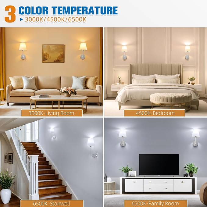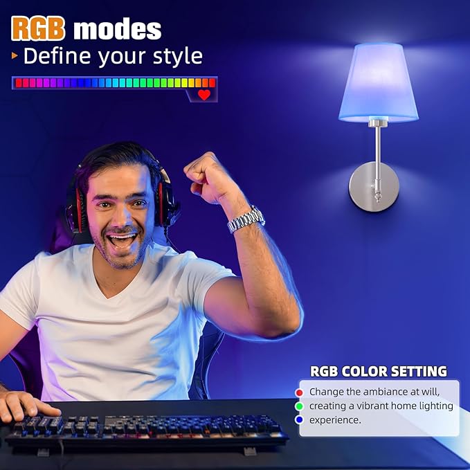 - 【Dimmable & Color Customized】Customize your lighting experience with adjustable color temperatures ranging from 3000K to 6500K and five levels of brightness (20%-100%),as well as 10 RGB colors.Whether you need warm, cozy lighting or bright, energizing illumination, our sconces wall decor set of 2 offer a comprehensive range of lighting options.