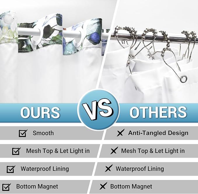 - No hooks needed! This shower curtain designed with "Split Rings" that let you hang them easily. Suitable for various home decor.