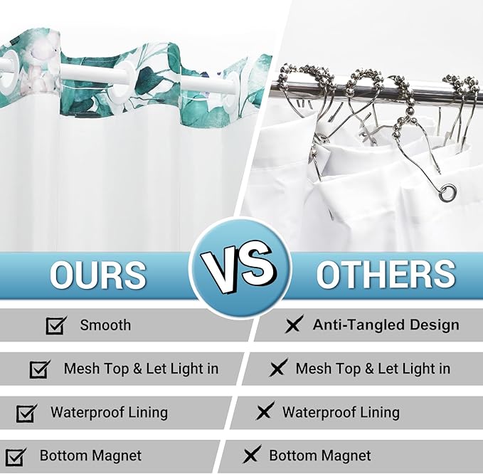 - No hooks needed! This shower curtain designed with "Split Rings" that let you hang them easily. Suitable for various home decor.