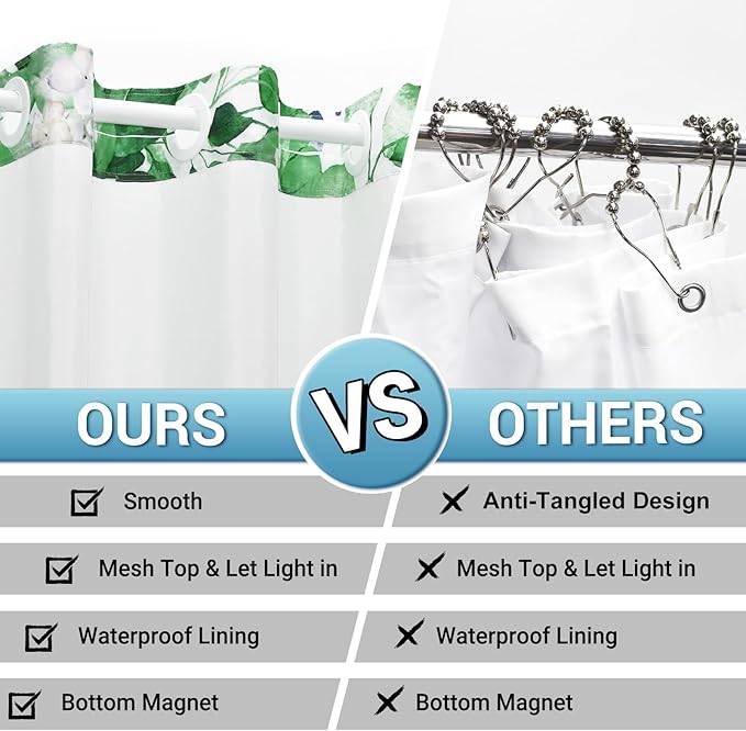 - No hooks needed! This shower curtain designed with "Split Rings" that let you hang them easily. Suitable for various home decor.