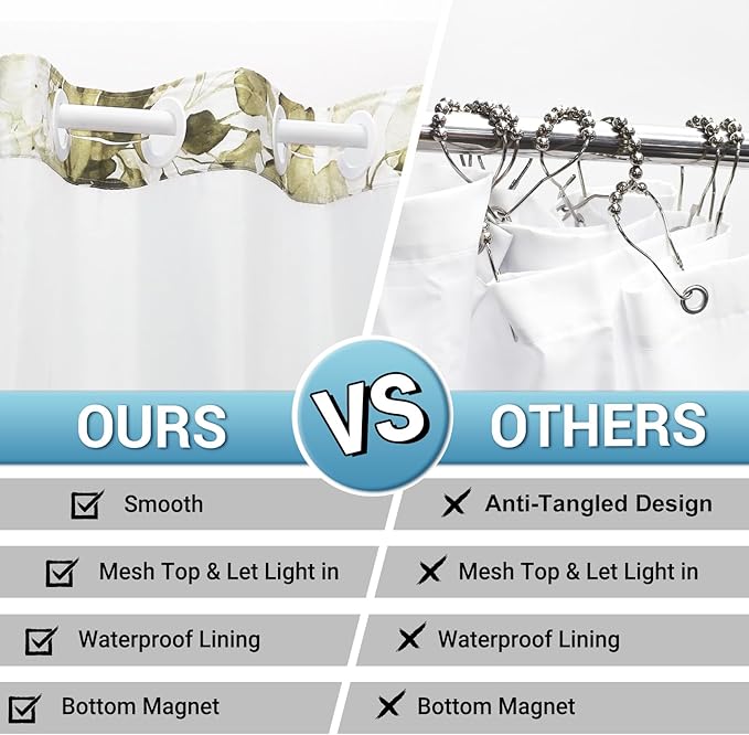 - No hooks needed! This shower curtain designed with "Split Rings" that let you hang them easily. Suitable for various home decor.
