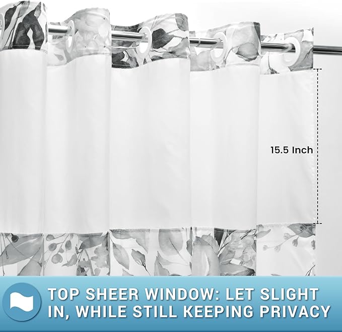 - Built-in Liner Inside: The white snap on/off liner is easy for removal, it's convenience for cleaning or replacement.mesh sheer window at top allows light to come in the shower, 2 magnets at bottomwhile, can be attached to the bathtub,can protect privacy,bring you an wonderful shower experience.