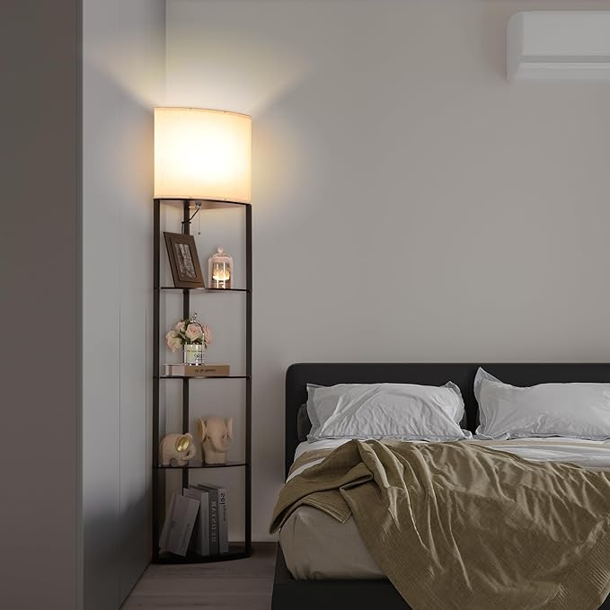 - 【Storage space 】Our floor lamps maximize your storage potential with 4 layers of high density fiberboard, each with a maximum weight of over 50 pounds, providing plenty of space to display your precious photos, books and plants. as well as daily necessities such as mobile phones. This larger storage floor lamp is both practical and decorative for your home and matches perfectly with your furniture.