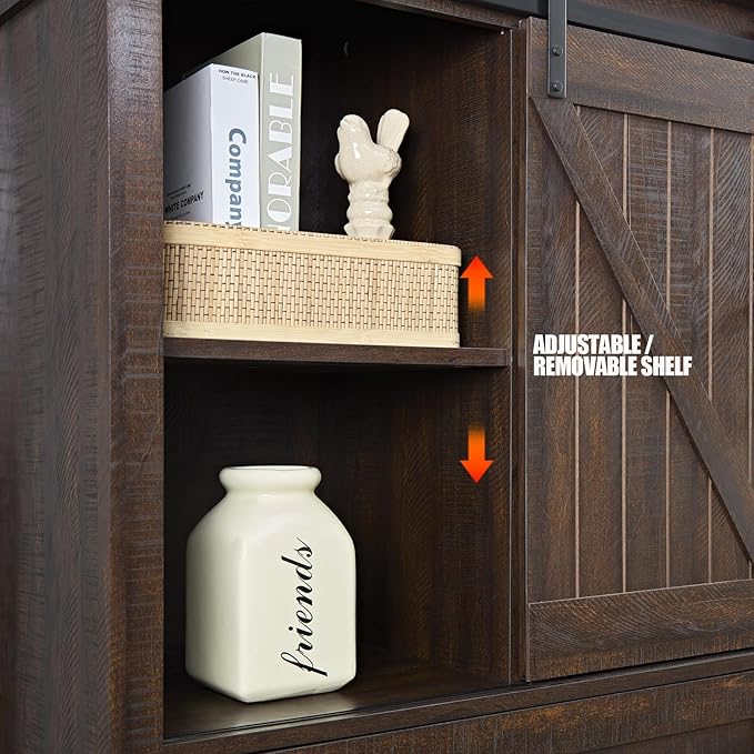 - 【A Statement Piece for Any Room】Make a bold statement with this stunning piece. Whether used in the living room, bedroom, or dinning room, the sliding barn doors add a stylish touch that complements any decor.