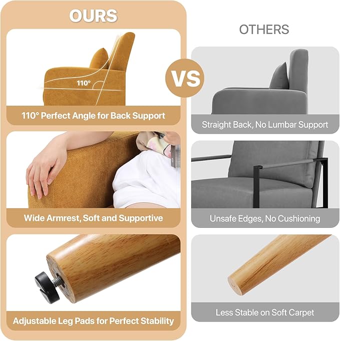 - Comfy and Supportive Material : The upholstered back and seat are made from a highly resilient sponge, constructed with multiple layers of high-density foam that prevent sinking. These compact accent chairs add chic comfort to small spaces