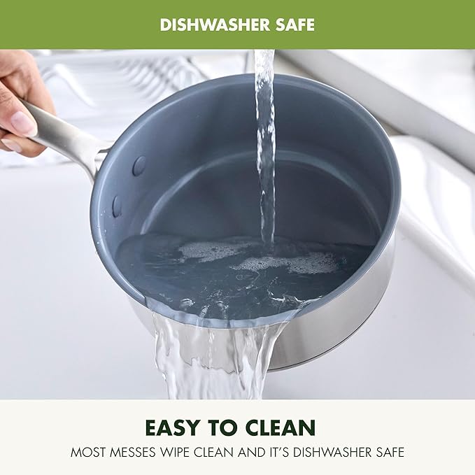 GreenPan Stainless Steel Treviso 2.1QT Saucepan with Lid, Healthy Ceramic Nonstick, PFOA-Free PFAS-Free, Induction, Dishwasher Safe, Oven Safe, Even Heating, Silver