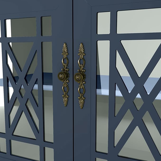 70" Vintage TV Stand with Carved Doors for TVs Up to 80" - Navy