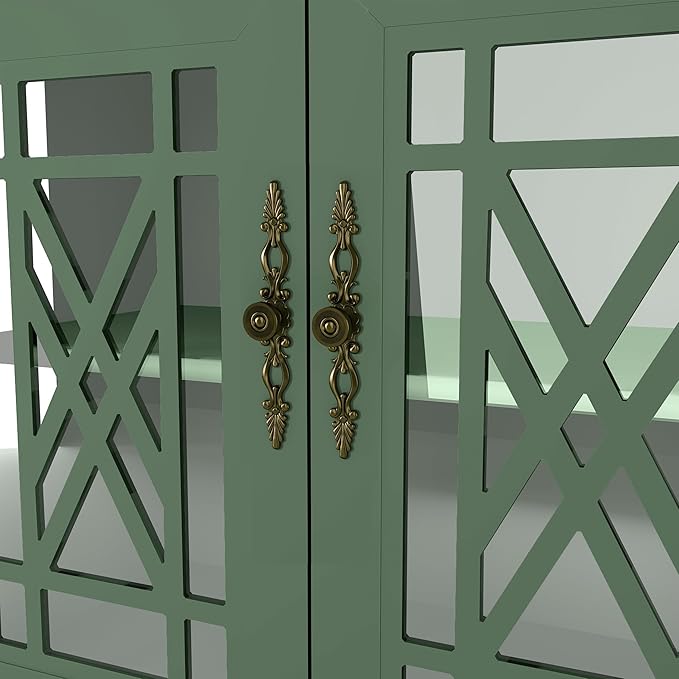 70" Vintage TV Stand with Carved Doors for TVs Up to 80" - Green