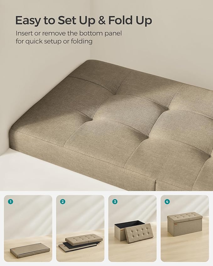 - 【QUICK ASSEMBLY, EASY FOLDAWAY】This storage ottoman from the SONGMICS MAZIE Collection has a foldable design that allows quick setup in seconds by simply inserting the bottom panel. Easily fold and store it under the bed or in a closet when not in use