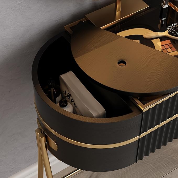 - 【A Gift for Your Loved One】 The elegant combination of black panels and metal creates a luxurious and fashionable style. This stunning vanity set is the perfect gift for birthdays, anniversaries, and Mother's Day.