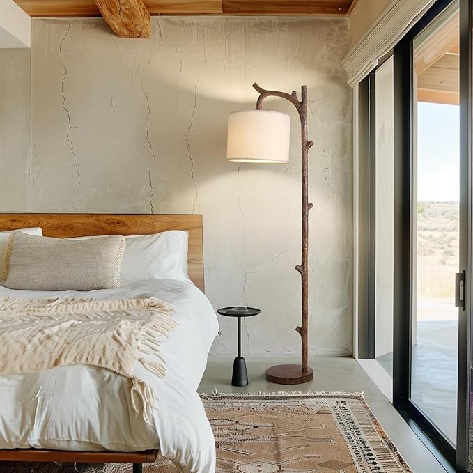 - Farmhouse Floor Lamp: This walnut standing lamp, Retro style design Tree Trunk faux wood lamps,the retro resin base and body, as well as the retro style stripes, give this tree floor lamp an elegant style. It can be used as a decoration and perfectly matches your furniture.