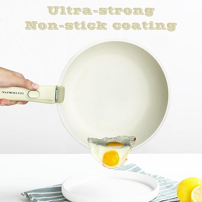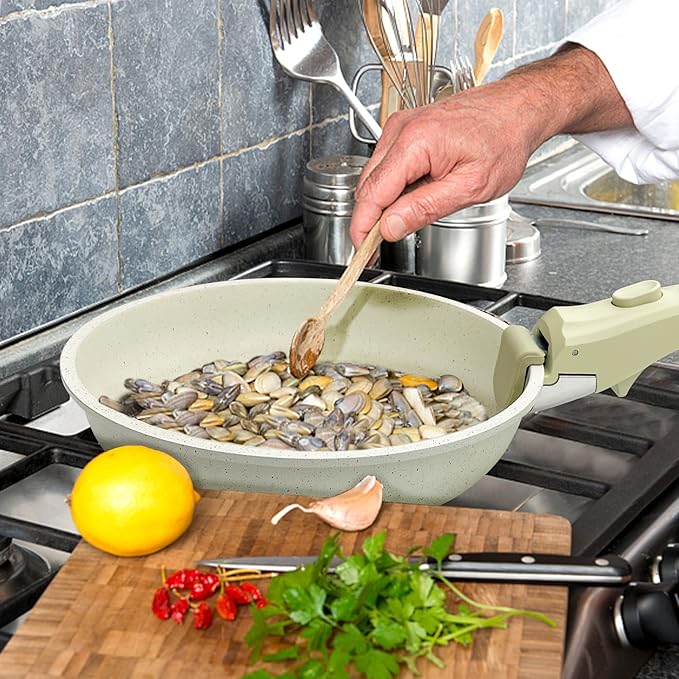 - REMOVABLE HANDLE: Suitable for all pots and pans in the cookware set, you can easily transfer pots and pans from the stovetop to the table or oven.