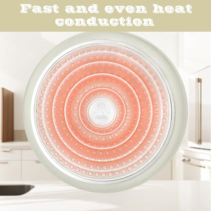 - EVEN HEAT CONDUCTIVITY: Pots and pans set has excellent heat conductivity, the food is evenly heated in the pot when cooking, the cooking effect is better.