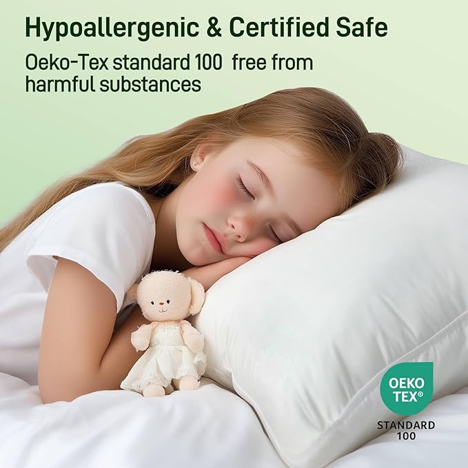 - 【Hypoallergenic Comfort, Certified Safe for Sensitive Skin】Certified by OEKO-TEX, this pillow is free from harmful chemicals, ensuring it is safe for sensitive skin. The soft, hypoallergenic bamboo viscose adds a layer of gentle luxury, making it perfect for those who value both comfort and well-being.