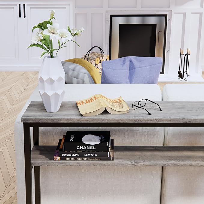 Narrow Console Table, 39.4” Sofa Table with Adjustable Shelf, 2-Tier Long Skinny Table for Hallway, Entryway, Living Room, Foyer, Grey