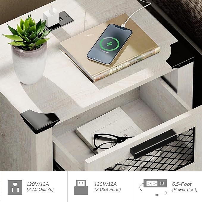 - Charging Function with USB Ports:Featured with 2 Standard Plug Outlets & 2 USB Ports, this side table is an ideal setup for charging your phones, lamps and other devices. Handy for your place as everything needed is within your arm's reach.