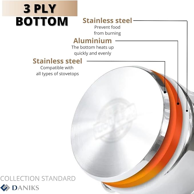 Daniks Standard 9-Piece Stainless Steel Induction Cookware Set, Saucepan, Dishwasher Safe Pots, Measuring Scale, Glass Lids, For Soup, Pasta, Stew, Silver
