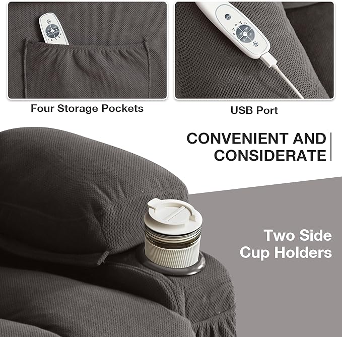 - ใ๐จ๐ฆ๐ ๐๐ต๐ฎ๐ฟ๐ด๐ถ๐ป๐ด & ๐ฆ๐ถ๐ฑ๐ฒ ๐ฃ๐ผ๐ฐ๐ธ๐ฒ๐๐ใ:Keep your essentials close in the dual side pockets, perfect for remotes, reading glasses, or magazines. A built-in USB charging port keeps your phone or tablet powered while you relax in your lift chair for elderly users, making it ideal for modern living rooms and home theaters.