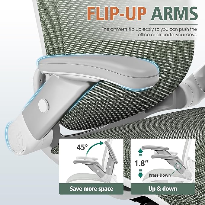 - 【ADJUSTABLE FLIP-UP ARMS】-If you want to make the most of the space under the table or choose a home desk chair for a small space/bedroom, this is the office chair for you! The GABRYLLY ergonomic office mesh chairs' armrest can be folded up(45°) and be adjusted the arms' height(1.8'').