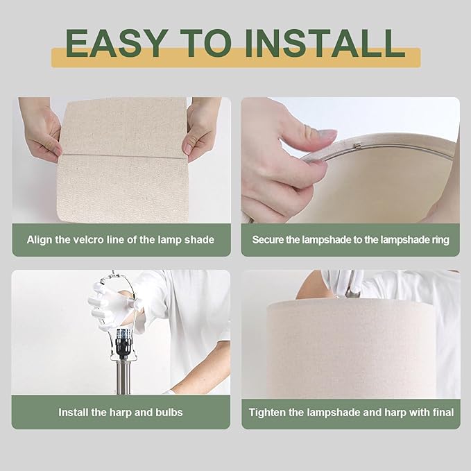 - 【Easy to Assemble】Our set of 2 bedside lamps require assembly, but don't worry—it’s straightforward with the included instruction manual(You can also check out our installation video or the picture steps on the details page). If you encounter any difficulties, please reach out to us via email for assistance.Lamps each use maximum 60 watt standard-medium base bulbs (bulbs not included).