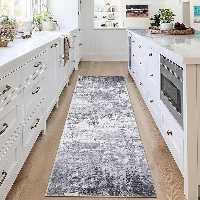 2x6 Modern Abstract Runner Rug Non Slip Soft Rug Stain Resistant Rugs Low Pile Non Shed Machine Washable for Hallway Kitchen Bathroom, Light Grey