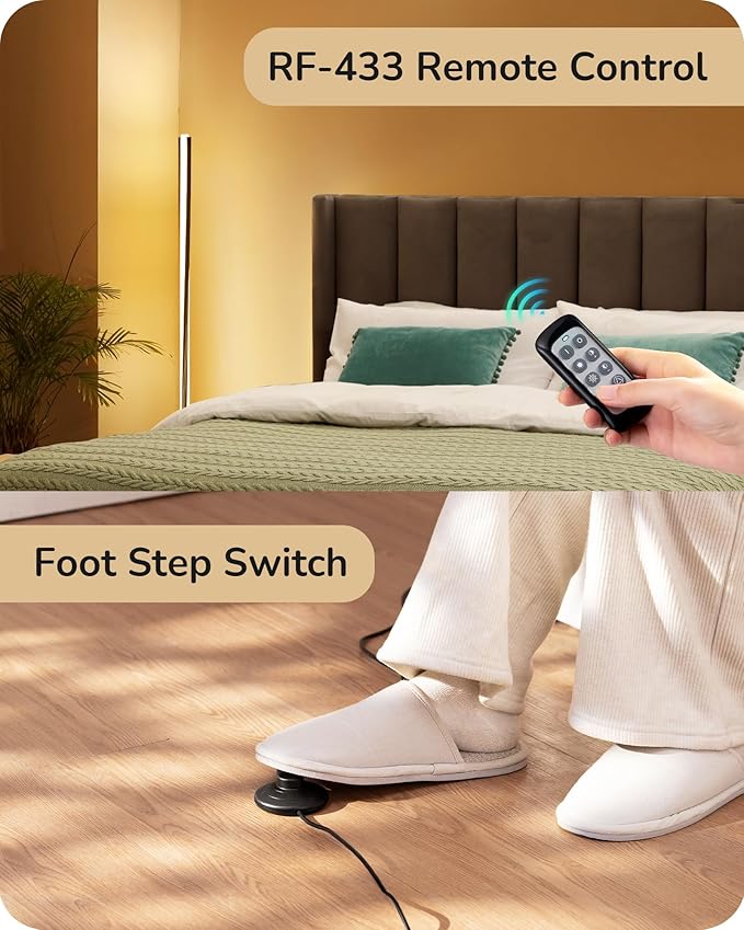 - [Remote & Foot Switch] With an RF-433 remote control that works up to 49 feet, you can easily turn the corner floor lamp on/off or adjust the brightness from anywhere in the room; foot switch for quick adjustment of brightness and color temperature without your hands