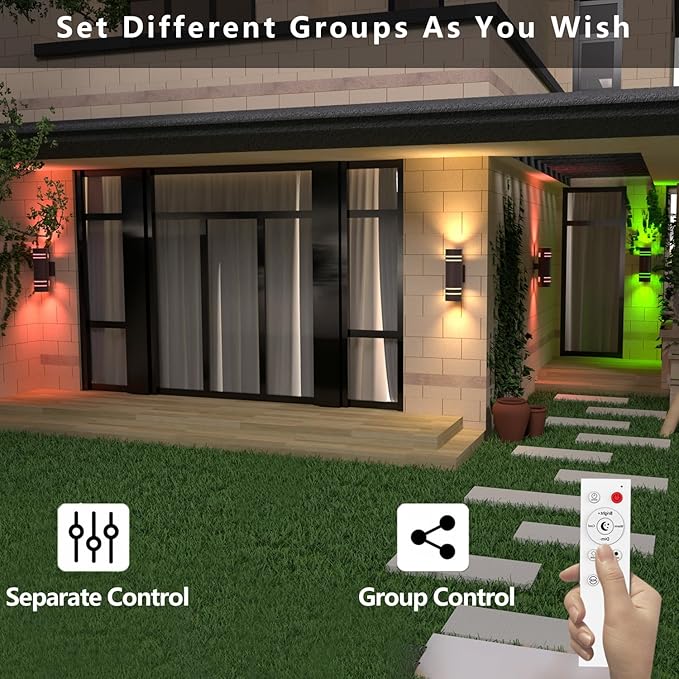 - Stylish Modern Lighting:the rgbcw outside wall lights for house feature a sleek cylinder design with a matte bronze finish.The up and down wall sconce lighting effect adds a unique visual appeal,offering a sophisticated and contemporary look.Ideal for backyard,garage door, porches, balcony,patio, pool enclosure or theater. The glare-free illumination creates a welcoming atmosphere while enhancing the beauty of your outdoor home.