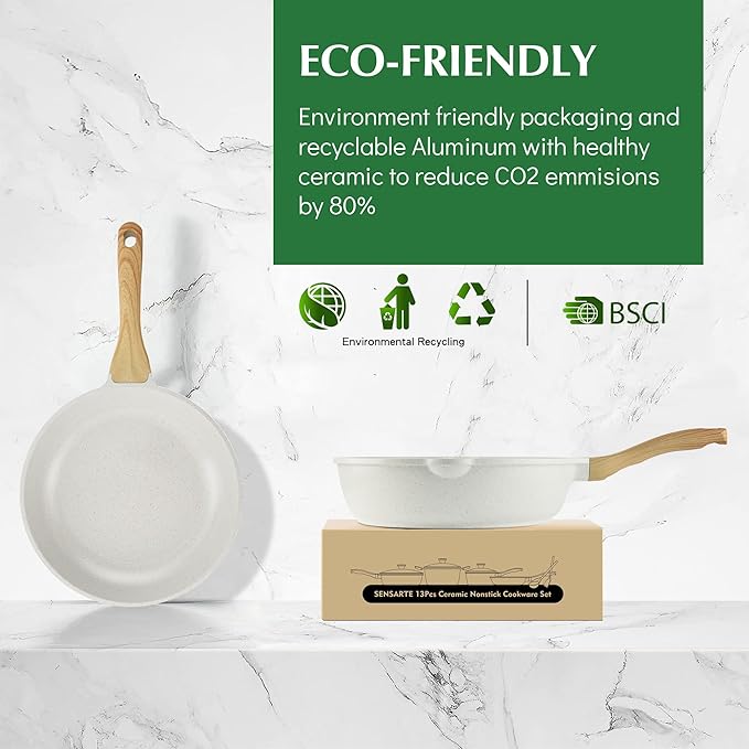 - Building a Green Future Starts in Your Kitchen - Made with recycled aluminum, reduces CO₂ emissions by 80%. Our eco-conscious cookware delivers professional performance while reducing environmental impact.