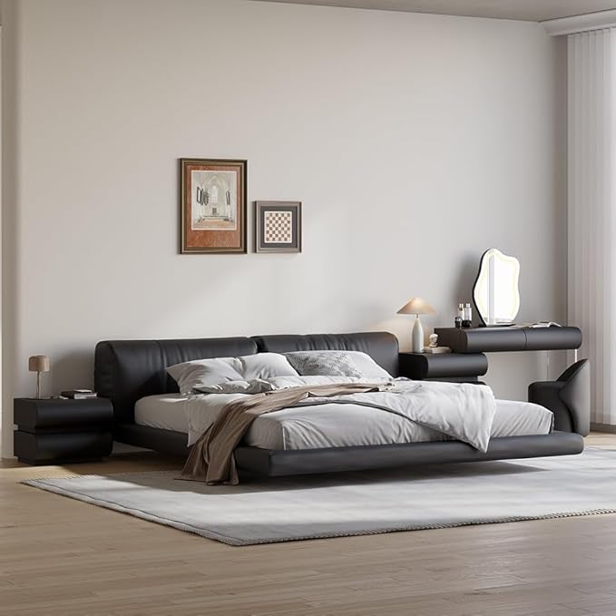 - [Elegant Vanity Set with LED Mirror] – Homary makeup vanity set features a sleek black PU leather design with a large LED mirror, perfect for applying makeup, hairstyling, or skincare routines in your bedroom