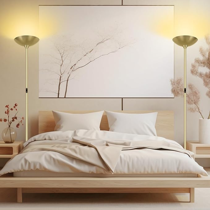 BoostArea Dimmable Floor Lamp,30W 3000LM Super Bright LED Torchiere Standing Lamp with Remote & Touch Control,71 in Tall Pole Sky Modern Floor Lamps for Living Room Bedroom Office,2700k-6500k,Gold