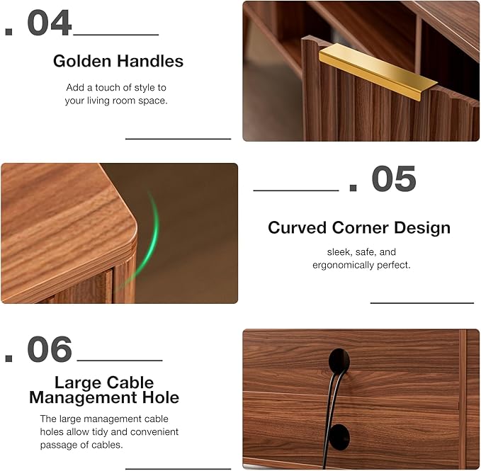 - Organized Storage: Features a middle shelf & 2 spacious cabinets for all your favorites. Plus, 2 rear cord holes keep wires neatly tucked away. Showcase or conceal – this mid-century entertainment center does it all with style.